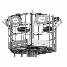 Высокомачтовые опоры ВМОН представляют собой граненые фланцевые конструкции со стационарной короной для организации освещения территорий. Высота опор составляет от 16 до 40 метров с конической формой ствола для оптимального распределения ветровых нагрузок. Конструкция изготавливается из высокопрочной стали с антикоррозийной защитой методом горячего цинкования. Количество площадок отдыха варьируется от одной до четырех в зависимости от высоты мачты. Оборудование рассчитано на установку от 6 до 30 осветительных приборов и эксплуатацию в ветровых районах от I до VII.